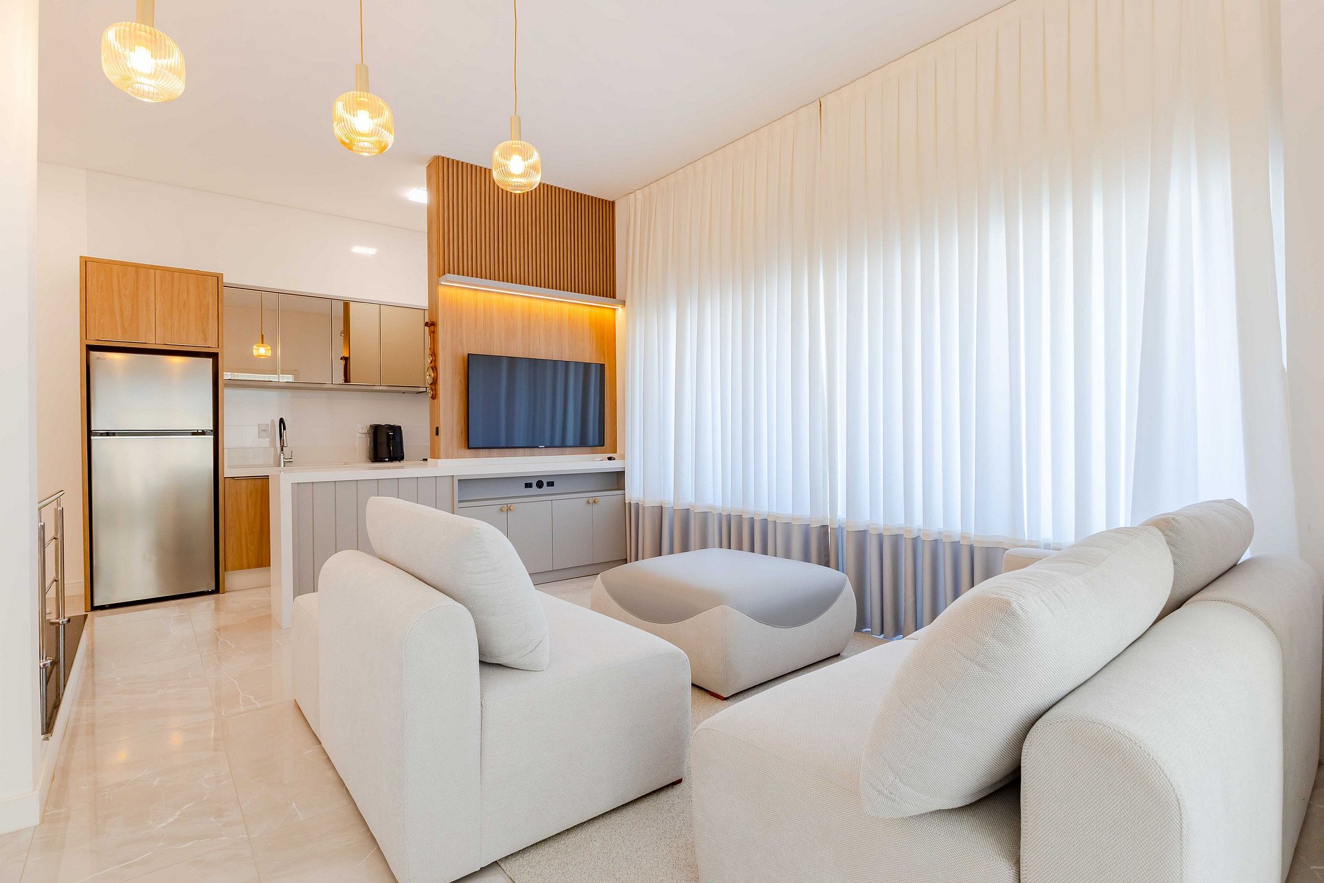 - Sala de estar com TV e ar condicionado split;