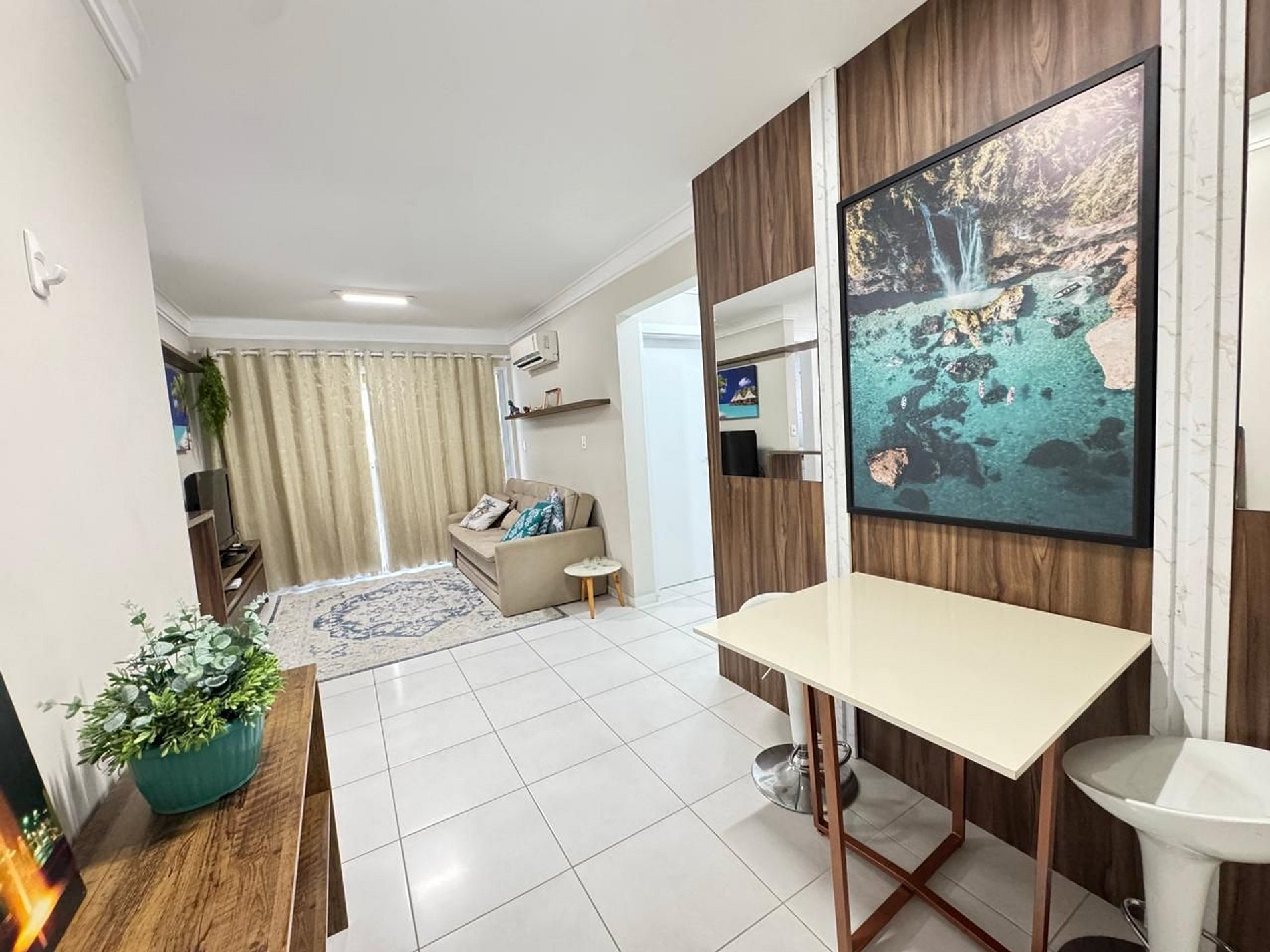 - Sala de estar com TV e ar condicionado split;