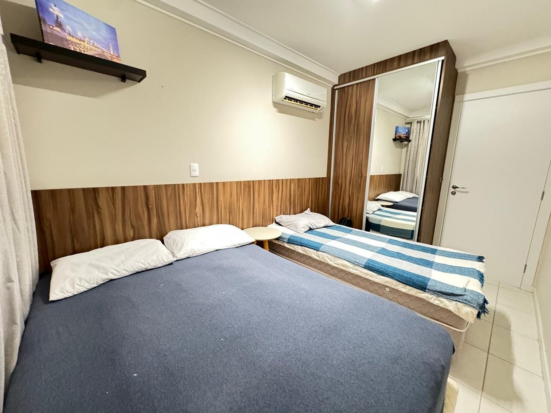 - 01 Quarto com cama de casal e 01 de solteiro com ar condicionado split;